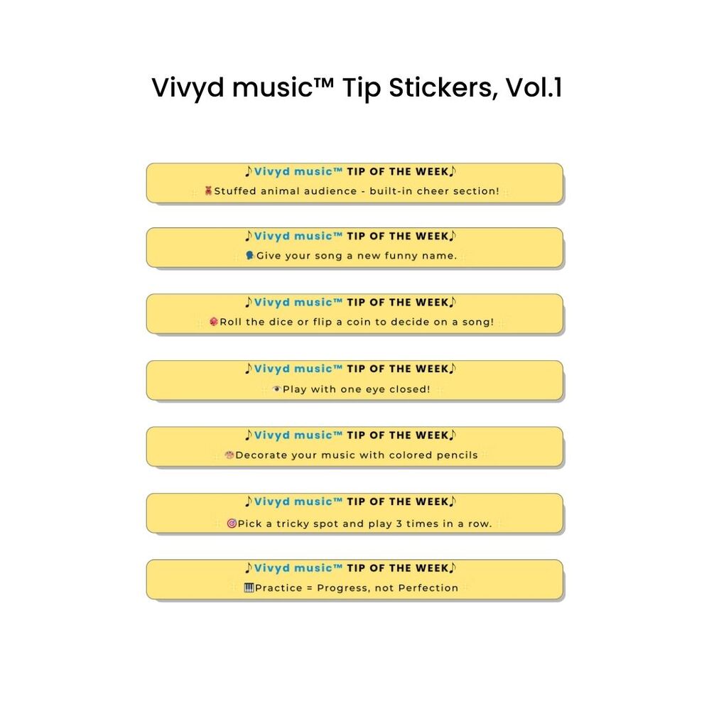 - 💛 Each sticker includes a motivational (and delightfully quirky) Vivyd music™ tip to keep spirits high while practicing